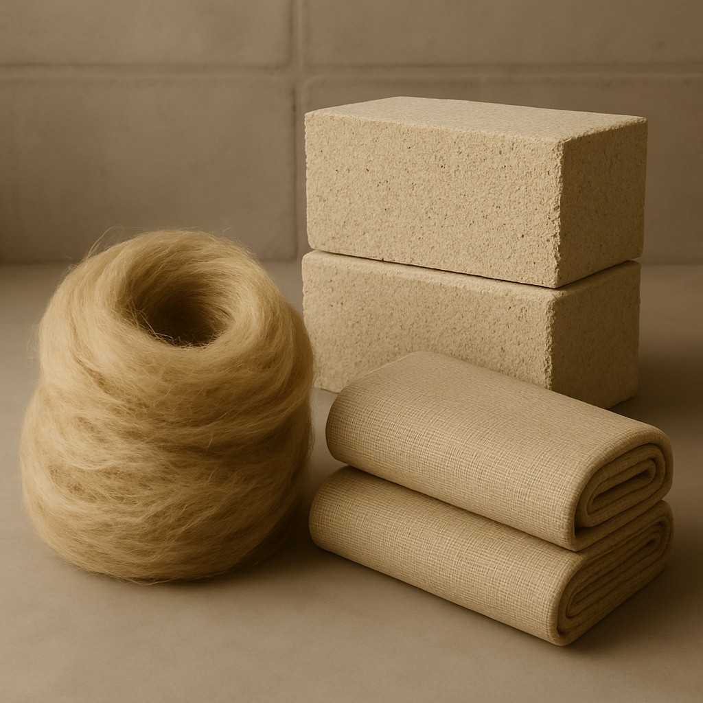 Различные строительные блоки на основе конопли, демонстрирующие использование технической конопли вэкологически устойчивых строительных материалах.